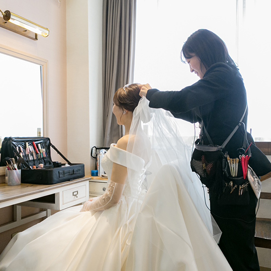 新郎・新婦ヘアメイク / ドレスフィッティング / 新郎サポート / 撮影アテンド